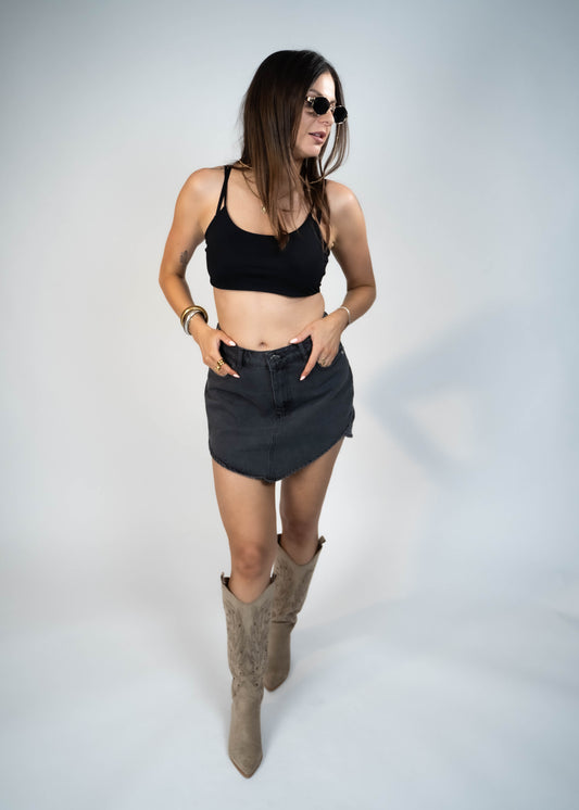 Downtown Asymmetric Grey Denim Skirt