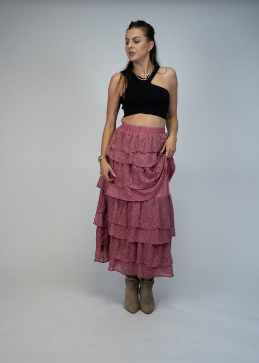 Savannah Chic Lace Ruffle Maxi Skirt