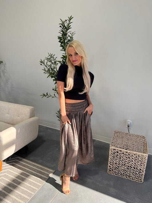 Sienna Metallic Smocking Waist Midi Skirt