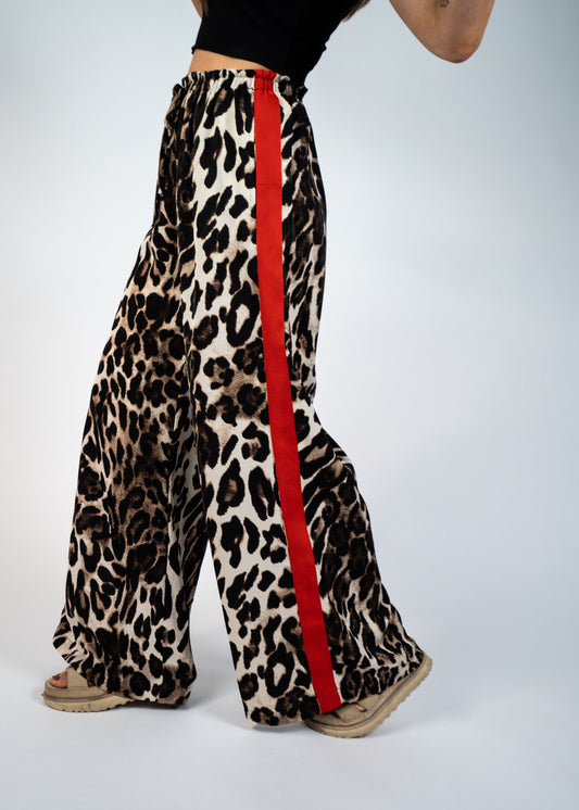 Barcelona Leopard Straight Pants with Red Stripes