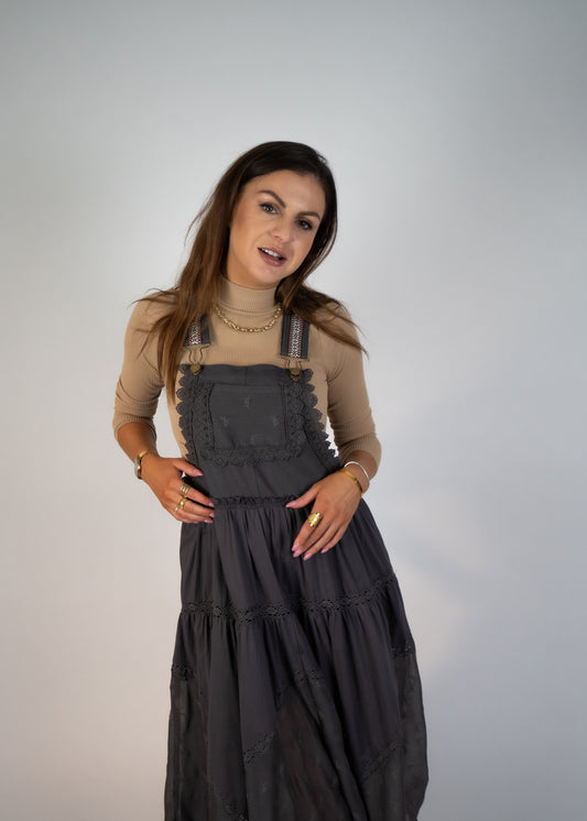 Louvre Lace Embroidered Tulle Bib Maxi Dress